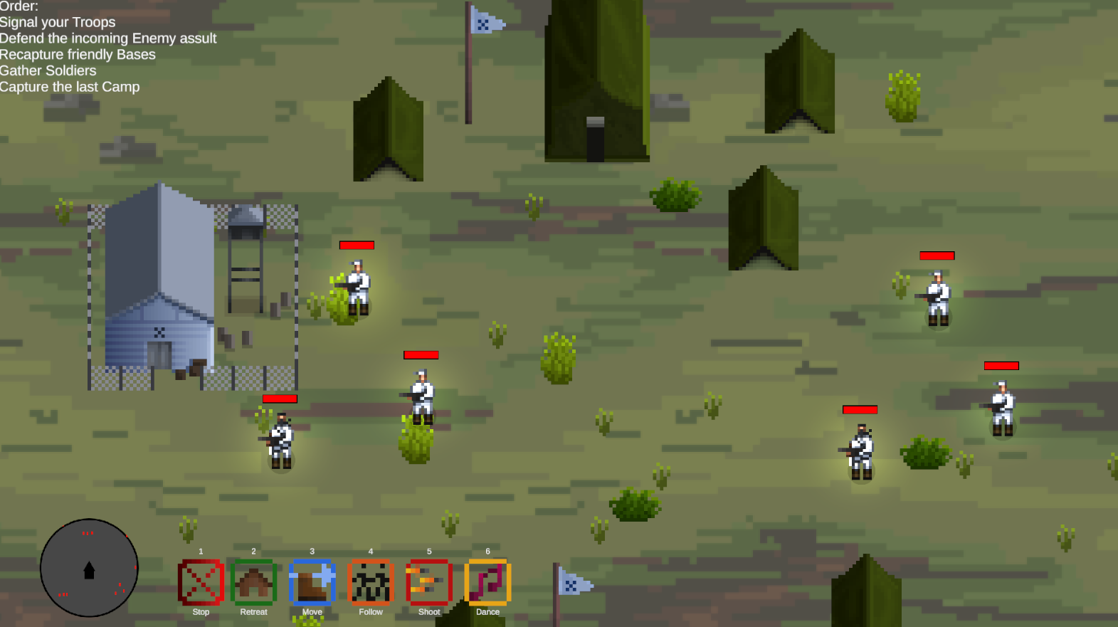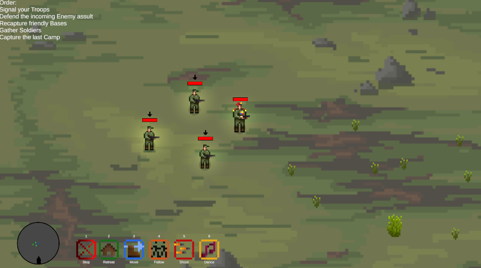 Keys 1–6 to issue different commands to your soldiers